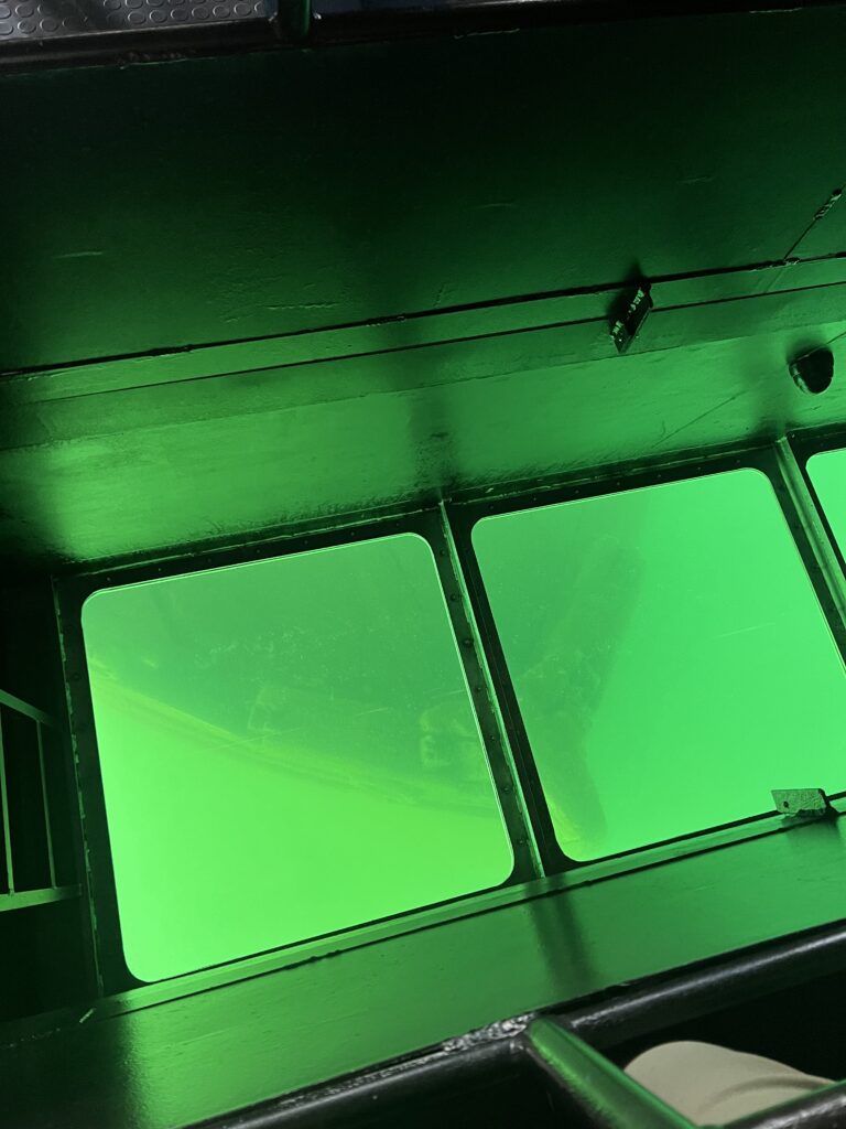 The tour guides take you directly over the shipwrecks while sharing the history behind each one. The boat has large glass viewing panels that let you look straight down to the rocky bed of Lake Superior. Because the wrecks sit in water only about 30–40 feet deep, you get an incredibly close, detailed view of the ships. It feels surreal seeing pieces of history lying quietly on the lake floor.